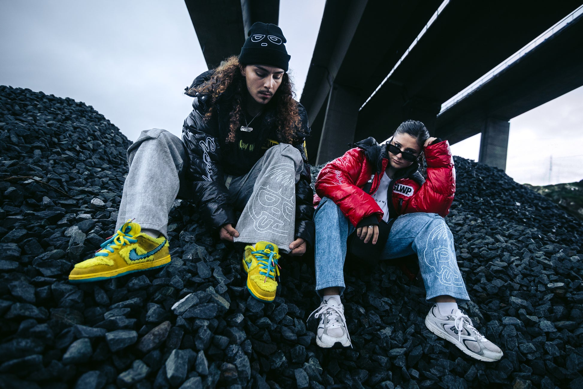 Los modelos miden: El chico 1,68 cm y la chica 1,65 cm. El chico viste una talla L y la chica una talla M